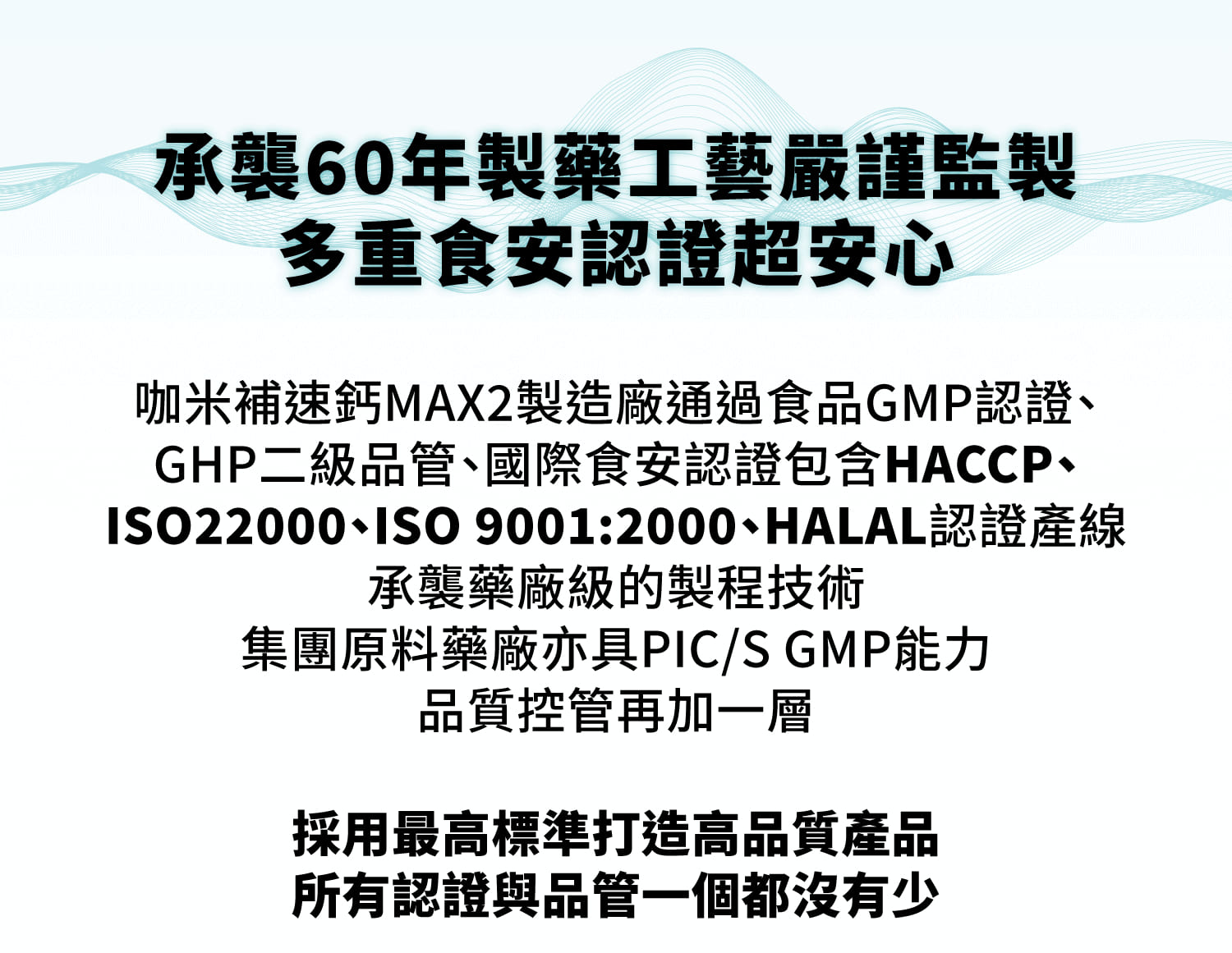 別擔心!咖米全新專利螯合劑型,小小一顆,鈣含量與吸收率都做到超高!