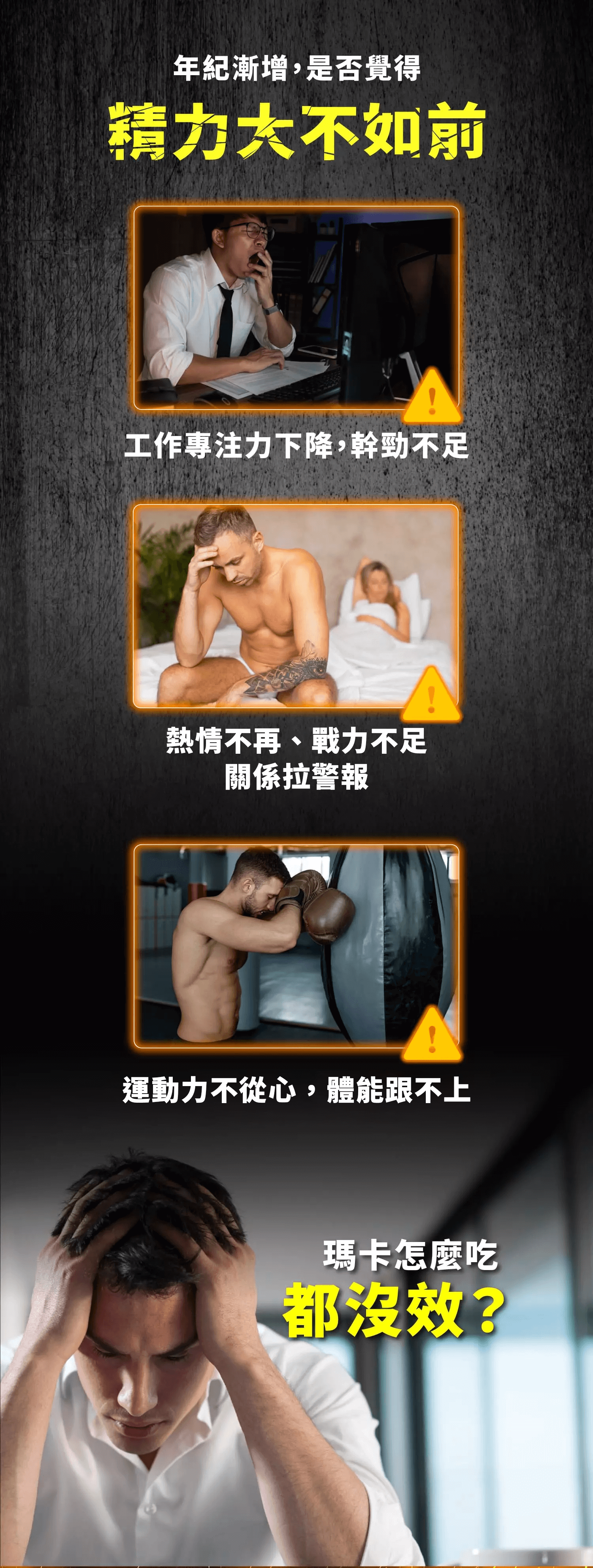 精力大不如前、關係拉警報?運動力不從心、工作專注力下降、幹勁不足?