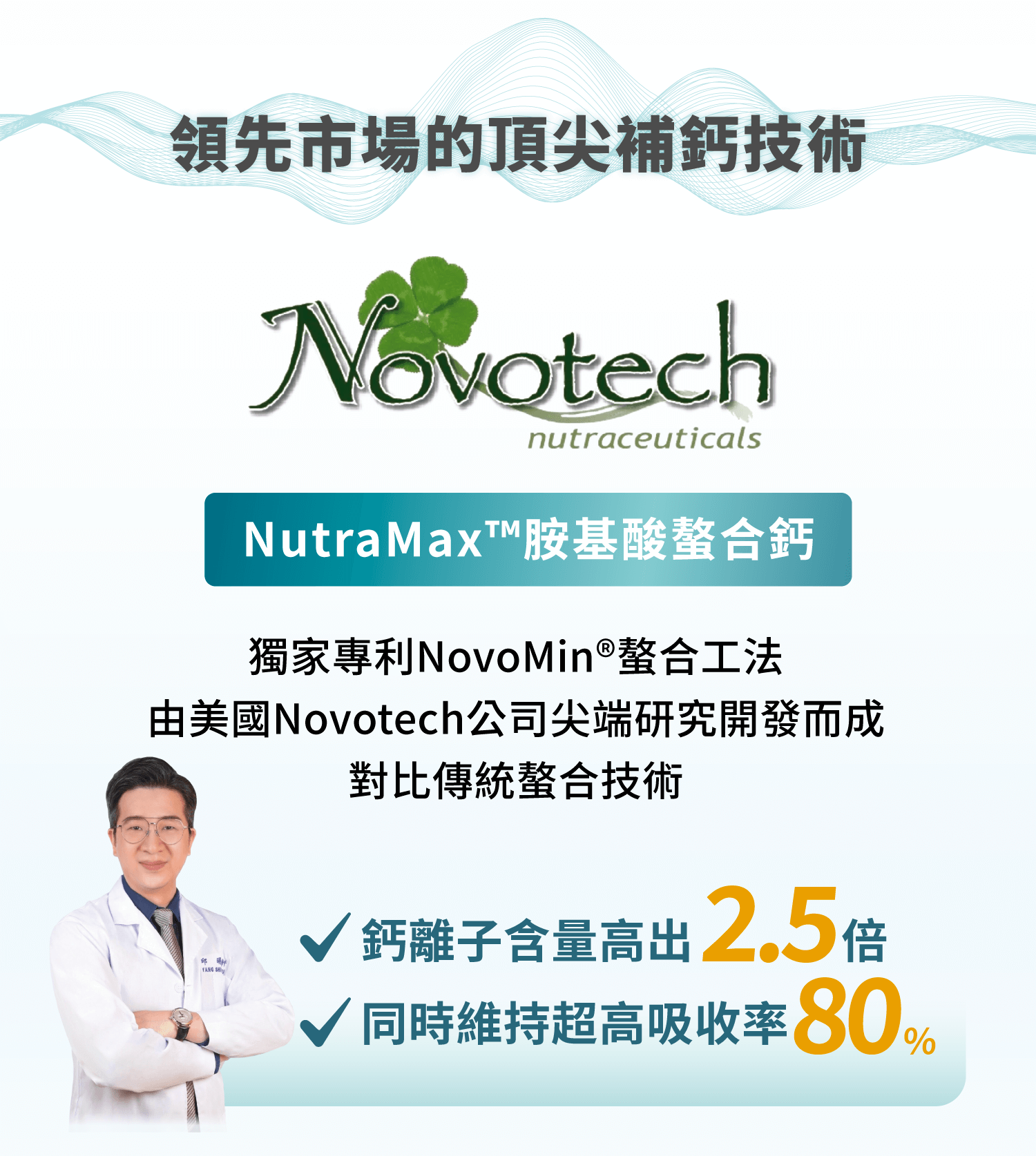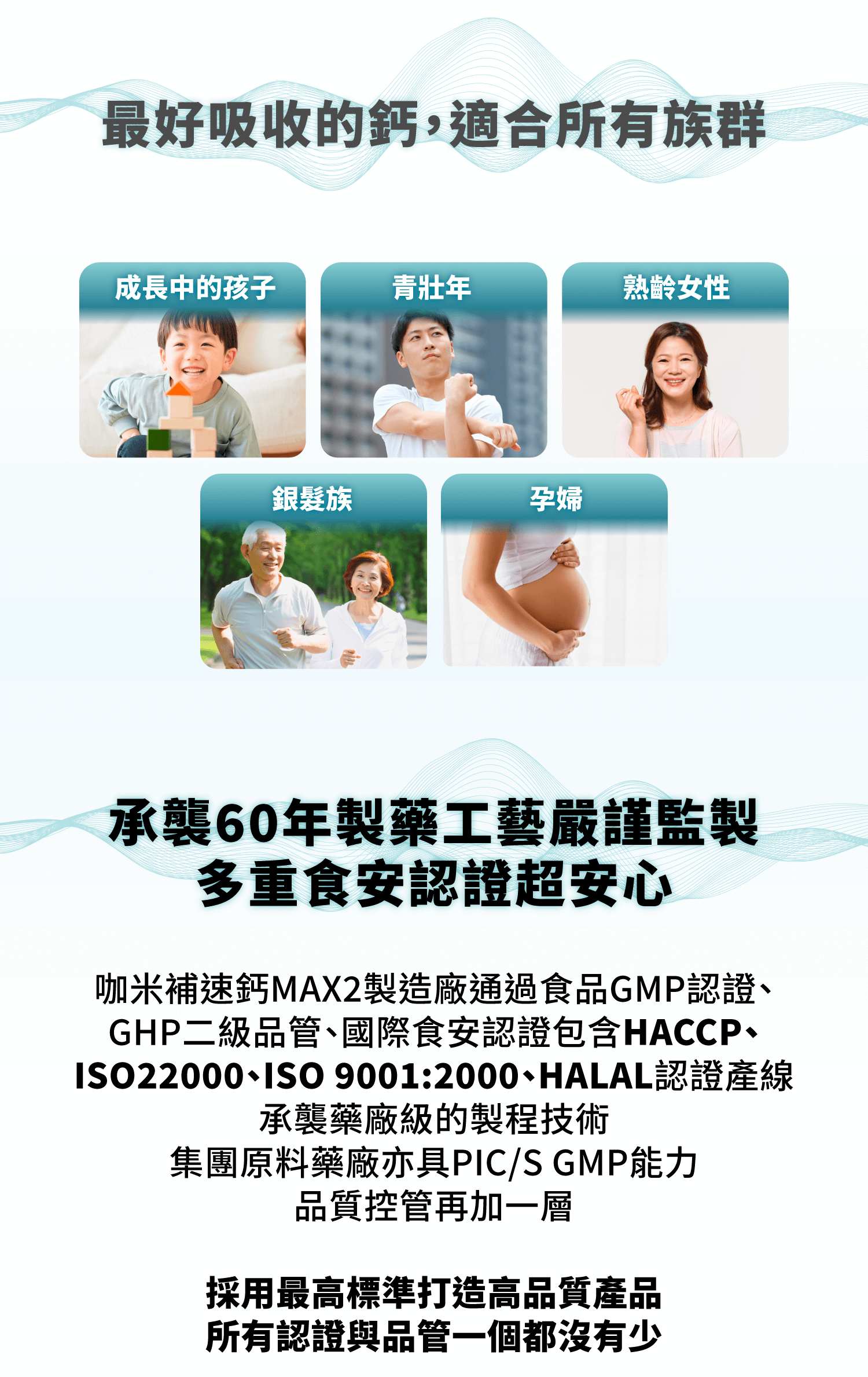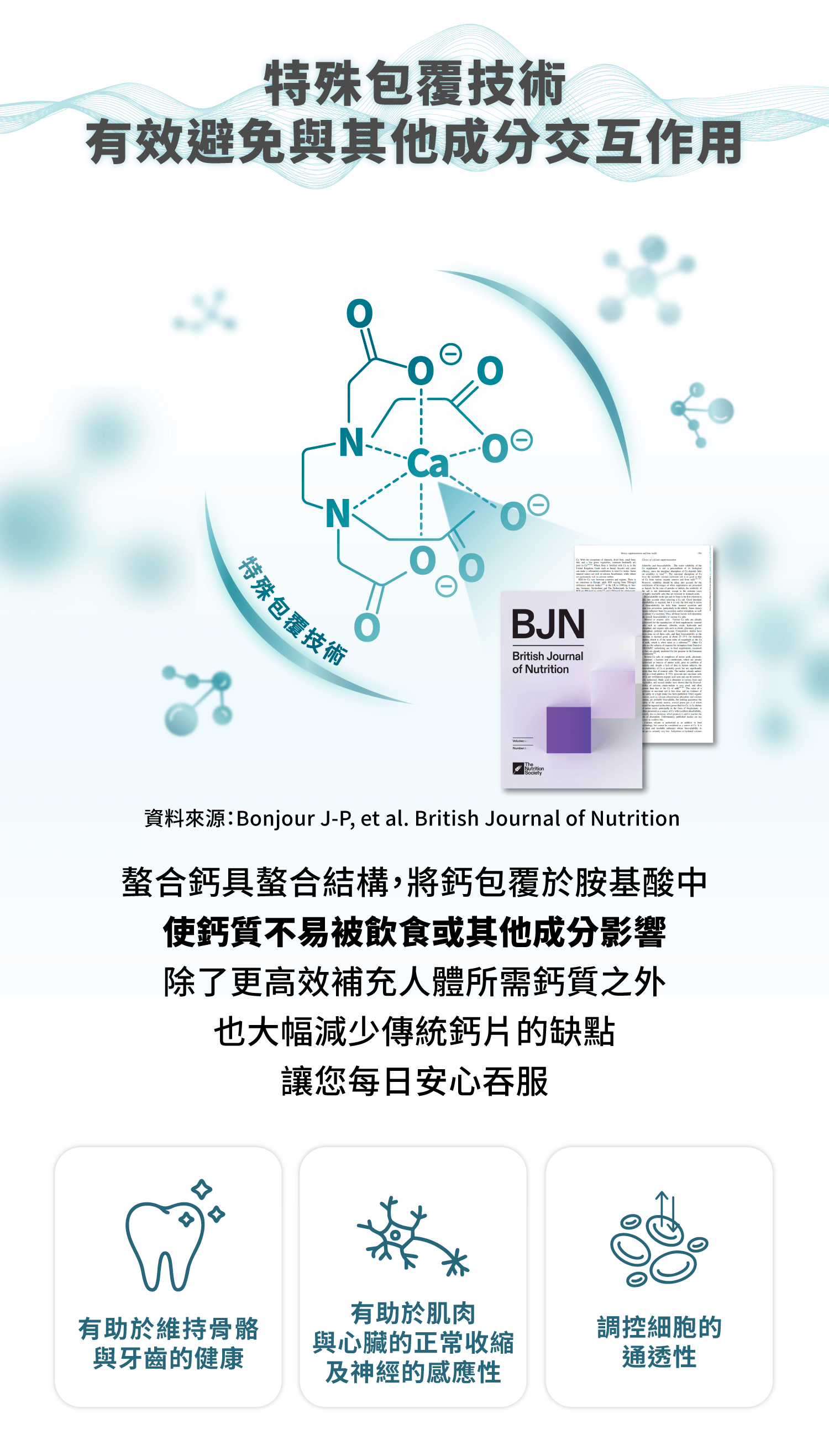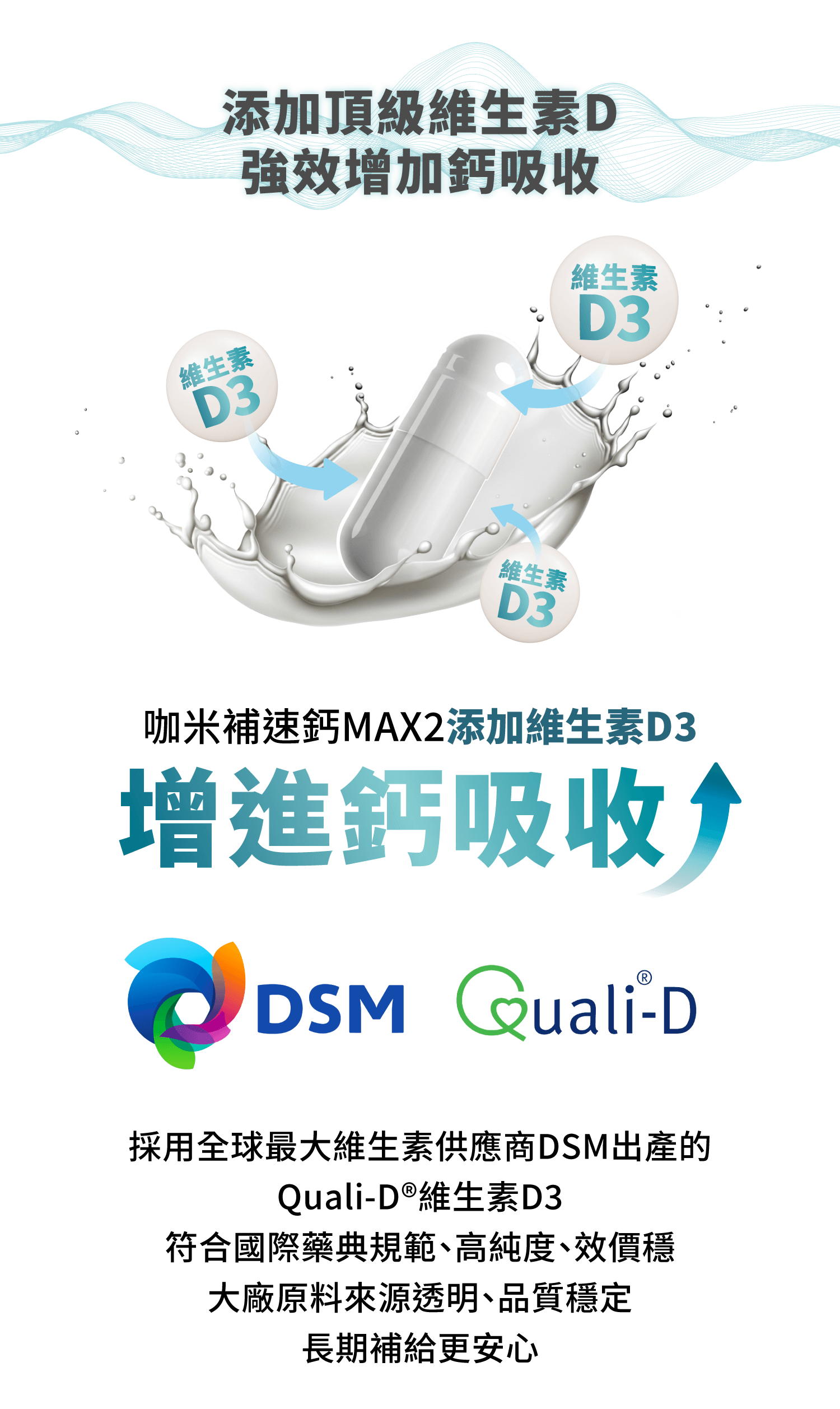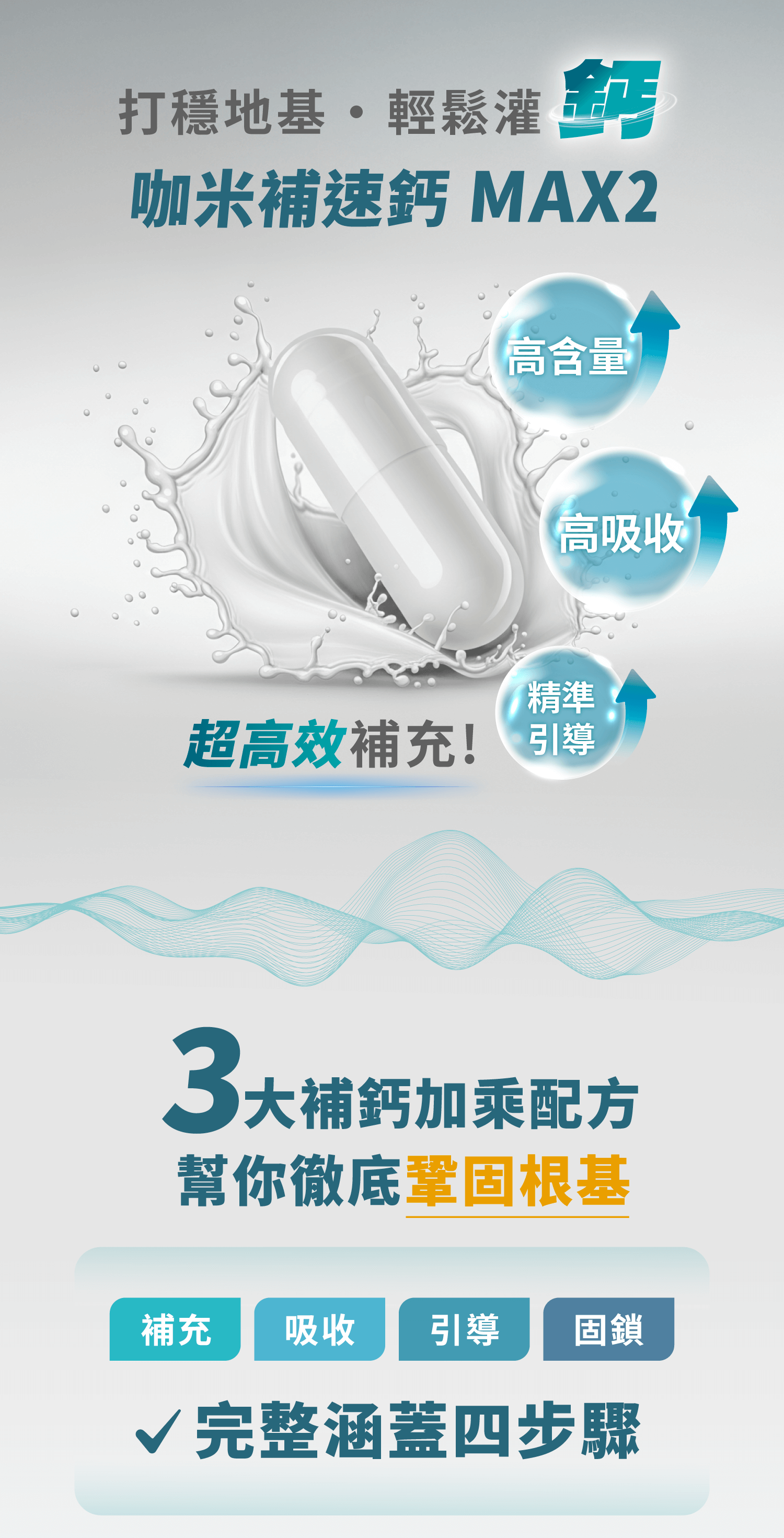 別擔心!咖米全新專利螯合劑型,小小一顆,鈣含量與吸收率都做到超高!