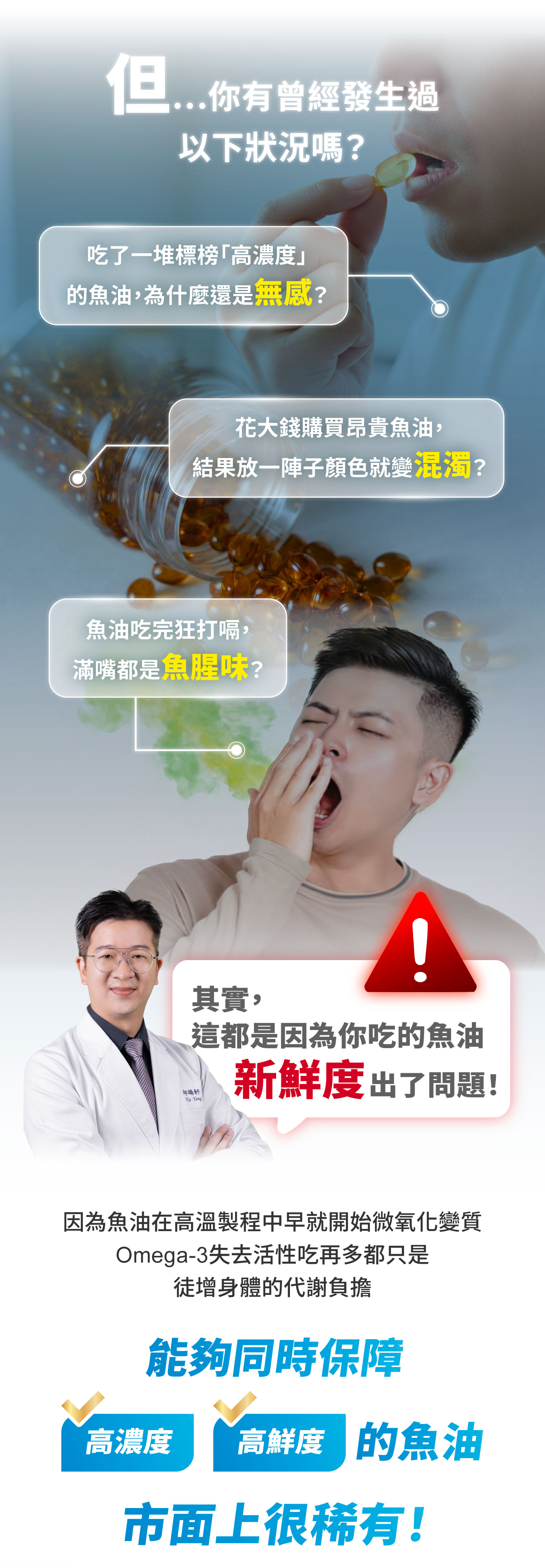 *注意事項:孕婦、哺乳、兒童、凝血功能不佳者、即將進行手術者、特殊疾病或正在服用相關藥物者,服用前請先諮詢醫師。本產品含有魚類製品,對魚類過敏者不宜食用。